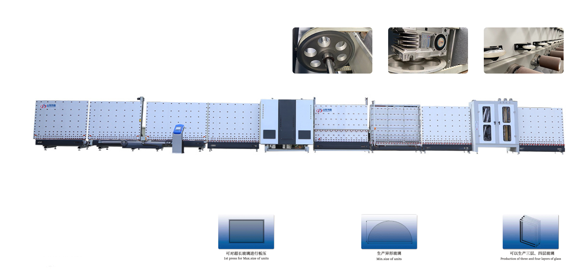 可以生產(chǎn)超長二層、三層、大小片(不等邊)幕墻中空玻璃及異型中空玻璃。